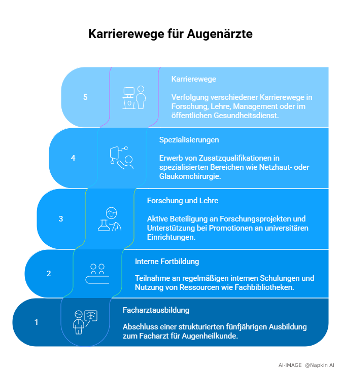 Strukturierte Facharztweiterbildung: Die Weiterbildung zum Facharzt für Augenheilkunde dauert mindestens fünf Jahre und erfolgt nach klaren Curricula.